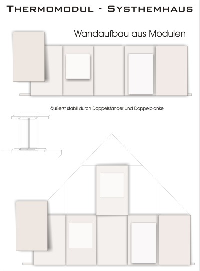 Die technische Entwicklung am bau, berücksichtigt immer mehr, das energetisch sinnvolle und vorallem das Kostensparende Bauen. Das von uns entwickelte Wandelement " Thermomodul" vereint konsequent die Anforderungen an ein werthaltiges, energiesparenden und kostengünstiges Bauen. Die Konstruktion des Themomodul-Wandelementes ist so gewählt, das es sich mit gerungsten technischen Aufwand , auch in der Selbstbaupraxis auf der Baustelle verbauen läßt. es aufgrund seiner Materialeigenschaften und Art der Konstruktion besonders stabil ist. Und zuletzt hinsichtlich seiner hervorragenden Wärmedämmeigenschaften besonders für das energiesparende , moderne Bauen steht.