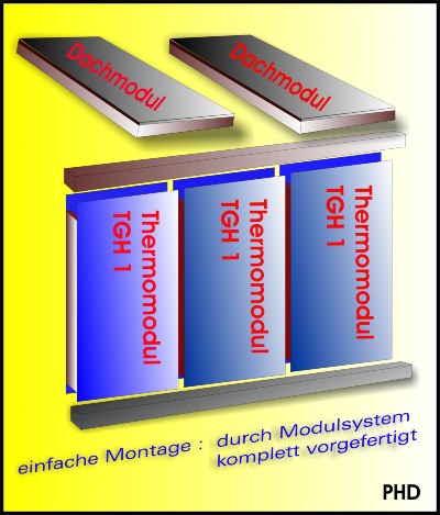 Die Dacheindeckung besteht aus dem Thermodach - Dämmstärke wie die Außenwand.
