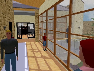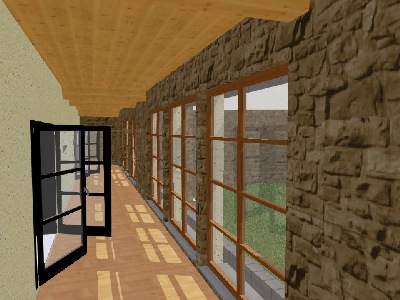 In der Hauptansicht sollen die konstruktiven Bauteile der Strebpfeiler in der Form historischer Bauteilfragmente ausgebildet werden. So entsteht aus der Hauptblickachse der Freiflächen der Eindruck der Einbeziehung historischer Bauteile in den Naubaukörper, bzw. der Eindruck historisch gewachsener Gebäudestrukturen. Gleichzeit wirkt das frei über den Gelände schwebende Bauwerk filigran und gegleidert. Die große Freitreppe zur Außengalerie stellt den äußeren Haupteingang dar. Auch die Galerie und die Treppe werden in der Gebäudeachse auf Pfeiler gegründet, die jedoch in der Gestaltung abgestuft und durch ebene Oberflächen charakterisiert sind. Somit werden die Größen und Formen der Gebäudeteile gut zueinander abgestuft. Das Bauwerk wirkt trotz seiner Größe insgesamt leicht und filigran. Zudem werden durch große Fenstergalerien Teile des Gebäudeinneren einsehbar. Somit vermischt sich in beiden Objektperspektiven, innerer/äußerer Eindruck die Umgebung mit dem Raum und umgekehrt. Es bestehen so insgesamt keine harten und sterng begrenzenden Gebäudekanten.
