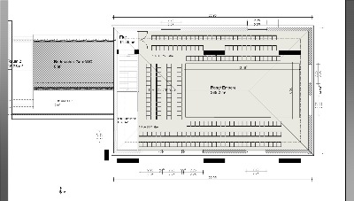 Das Parkett bildet sich im 1. OG schwebend über dem EG mit den Verkehrsflächen aus. Das gesamte Gebäude schwebt schwischen den Strebpfeilern und bildet ein konzeptionellen Resonanzraum aus. Reflektierende Oberflächen und schallabsorbierende Oberflächen werden so zueinander kausgerichtet, das die Auslegung der Raumstruktur des Gebäudes im Verhältnis 1-1-2 in drei Gliederungsebenen optimal akustisch genutzt werden kann. Die Bauweise als schwebender Korpus unterstütz als Resonanzkörper die hier geziel erarbeitete Raumstruktur .